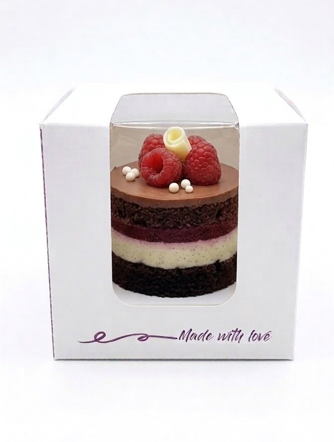 Cutia pentru prăjituri monoportie cu fereastră este perfectă pentru prezentarea elegantă a deserturilor individuale. Fabricată din carton rezistent și prevăzută cu fereastră transparentă, permite vizualizarea produsului fără a deschide ambalajul.