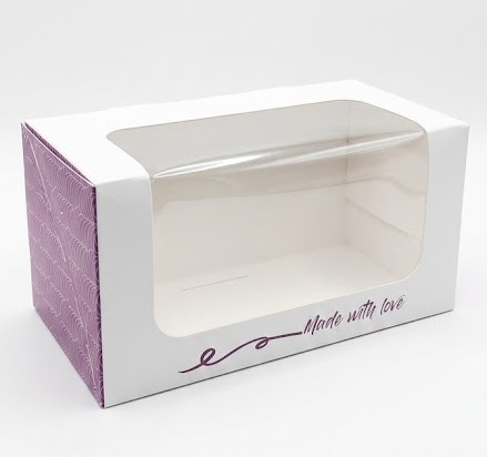 Cutii prăjituri cu fereastră „Made with love” DUO, 20×10×10 cm – 25 buc/set